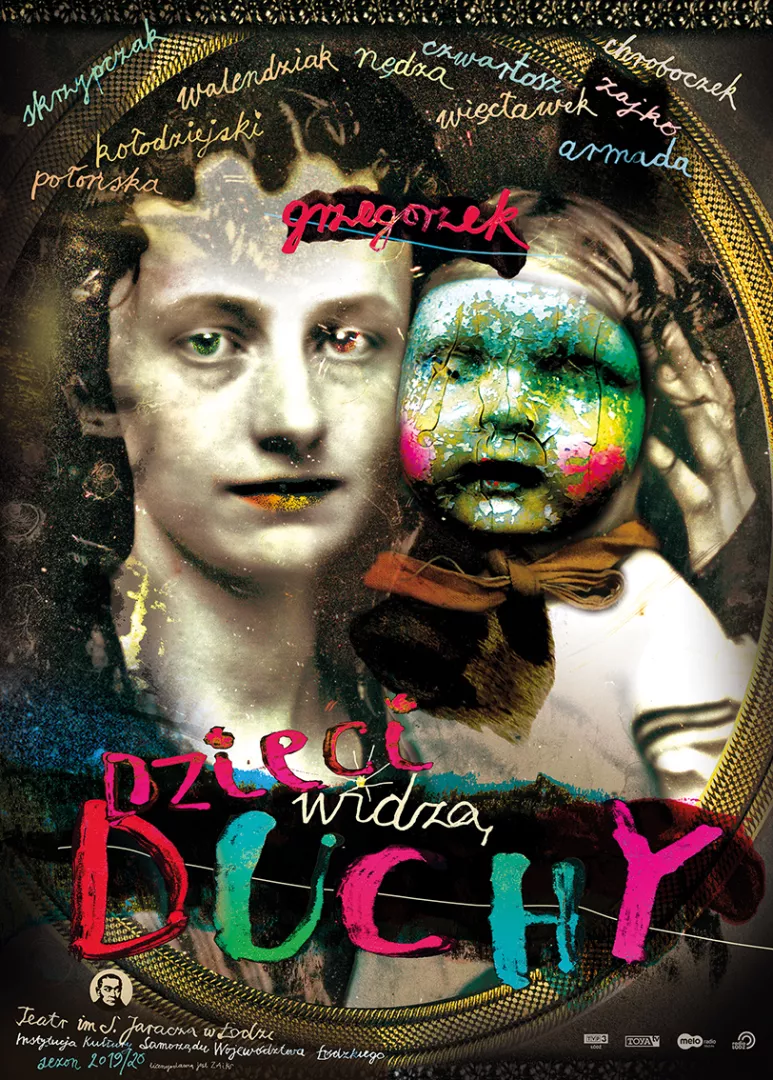 „Dzieci widzą duchy” to próba rozwinięcia w teatrze profesjonalnym konwencji teatralnej, którą reżyser Mariusz Grzegorzek eksplorował w udany sposób w dwóch przedstawieniach dyplomowych zrealizowanych na deskach Teatru Studyjnego we współpracy ze studentami wydziału aktorskiego Szkoły Filmowej w Łodzi: „Pomysłowe mebelki z gąbki” oraz „Nie jedz tego! To jest na święta!”. Spektakl będzie kolażową, muzyczno-ruchowo-teatralną, częściowo improwizowaną próbą odpowiedzi na pytanie: co to znaczy być prawdziwie dorosłym? Czy wyzbycie się wewnętrznego dziecka, skupienie na samokontroli, wzięcie odpowiedzialności za siebie i innych, musi doprowadzić do rezygnacji z wewnętrznej wrażliwości, empatii i intuicji? Czy w bajkach kryją się sensy głębsze i bardziej niepokojące niż tylko proste wytyczne: jak być sformatowanym członkiem rodziny i społeczeństwa? Materiałami literackimi, które zostaną wykorzystane podczas pracy nad przedstawieniem, będą poemat Edgara Allana Poe „Cień” oraz baśń braci Grimm „Krzak Jałowca”.
