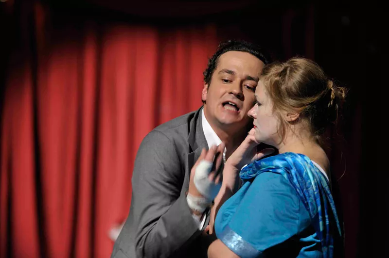 ...Autorka scenografii wymyśliła bardzo ciekawe rozwiązanie inscenizacyjne. Na początku na scenę wjeżdża wóz cyrkowy, którego buda staje się potem małą sceną dla epizodów rozgrywających się w innych niż główna akcja miejscach albo dla udających grę postaci muzyków. Jeszcze lepiej Justyna Łagowska spisała sie jako reżyser światła, umiejętnie tworząc przestrzeń sceniczną. Plusem spektaklu są też kabaretowe piosenki w wykonaniu Mileny Lisieckiej...