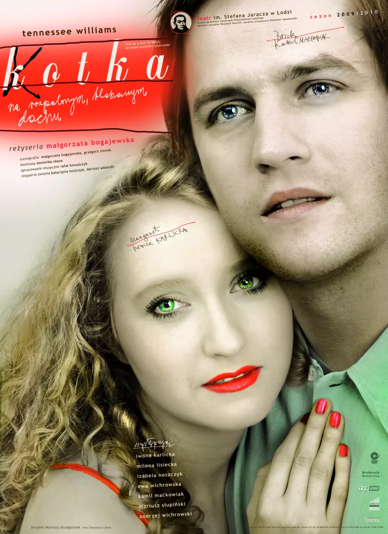 ...Tę sztukę można grać tylko wówczas, gdy ma się koncertową obsadę. Teatr Jaracza taką ma. ...Tytułowa Kotka, Margaret - żona młodszego z braci - z kocią przymilnością próbuje walczyć o miłość męża nierozstającego się z butelką. Iwona Karlicka (uwaga: talent!), tegoroczna dyplomantka PWSFTviT, urzeka delikatnością, determinacją i kocim uporem. Jako zapijaczony, poraniony Brick świetny Kamil Maćkowiak ma w sobie coś z desperata, który za wszelką cenę chce przegrać. Dla tej pary wyrazisty kontrast stanowią zasadniczy brat prawnik (uznanie dla Mariusza Słupińskiego) i jego żona, spodziewająca się szóstego dziecka. Izabela Noszczyk urzeka naiwnością mamuśki skrzyżowaną z determinacją zapobiegliwej matrony...Kontrapunktem do rozgrywki prowadzonej przez dzieci jest sposób, w jaki o rodzinie, obcości, udawaniu zaświadczają rodzice. Rozedrgana, przejmująca matka Ewa Wichrowska i ojciec w interpretacji Andrzeja Wichrowskiego - cyniczny, pewny swej władzy, a w końcu za wszelką cenę ukrywający lęk, są niczym szyfr do tego przejmującego portretu rodzinnego...