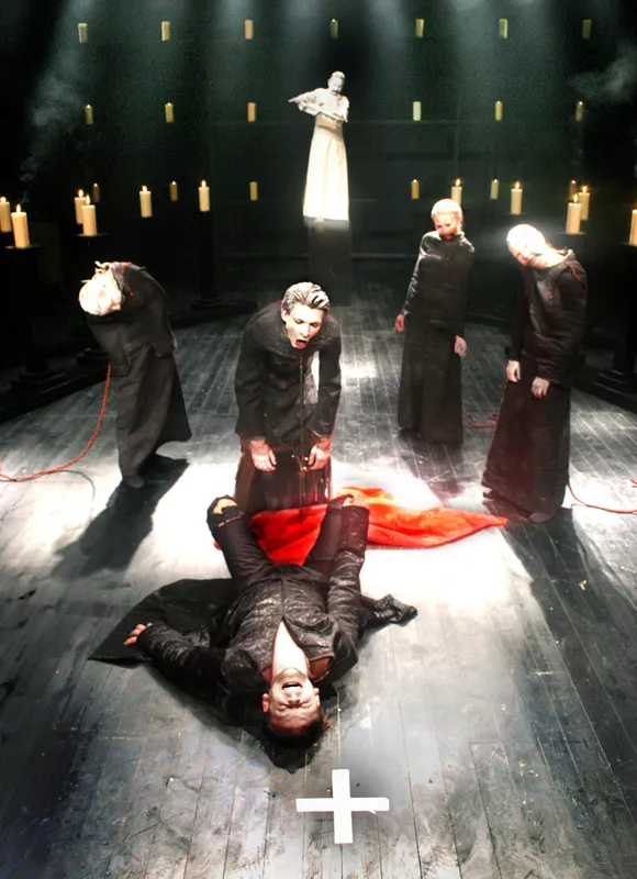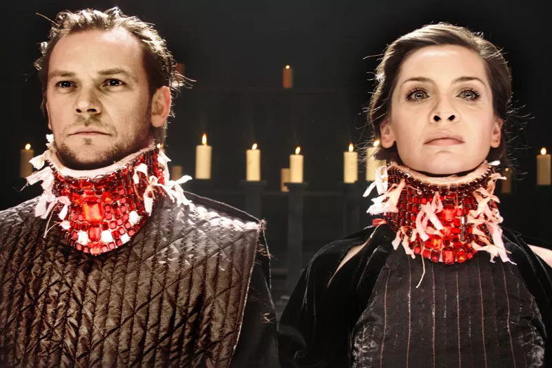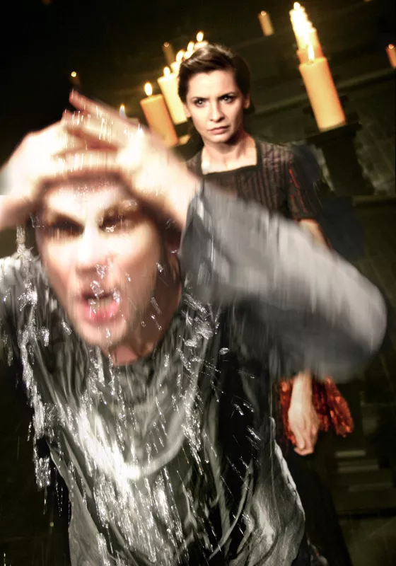 ...Mariusz Grzegorzek pokazał wyrafinowane estetycznie widowisko o magicznej sile oddziaływania, którą podkreślały dziesiątki płonących świec. Role spragnionej władzy pary porywająco zagrali Ireneusz Czop i Ewa Audykowska-Wiśniewska...