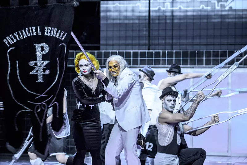…Zespół Jaracza gra na wysokich obrotach, w zjawiskowych kostiumach i szalonym rytmie. I chyba nie pomylę się, pisząc, że także świetnie się przy tej okazji bawi…